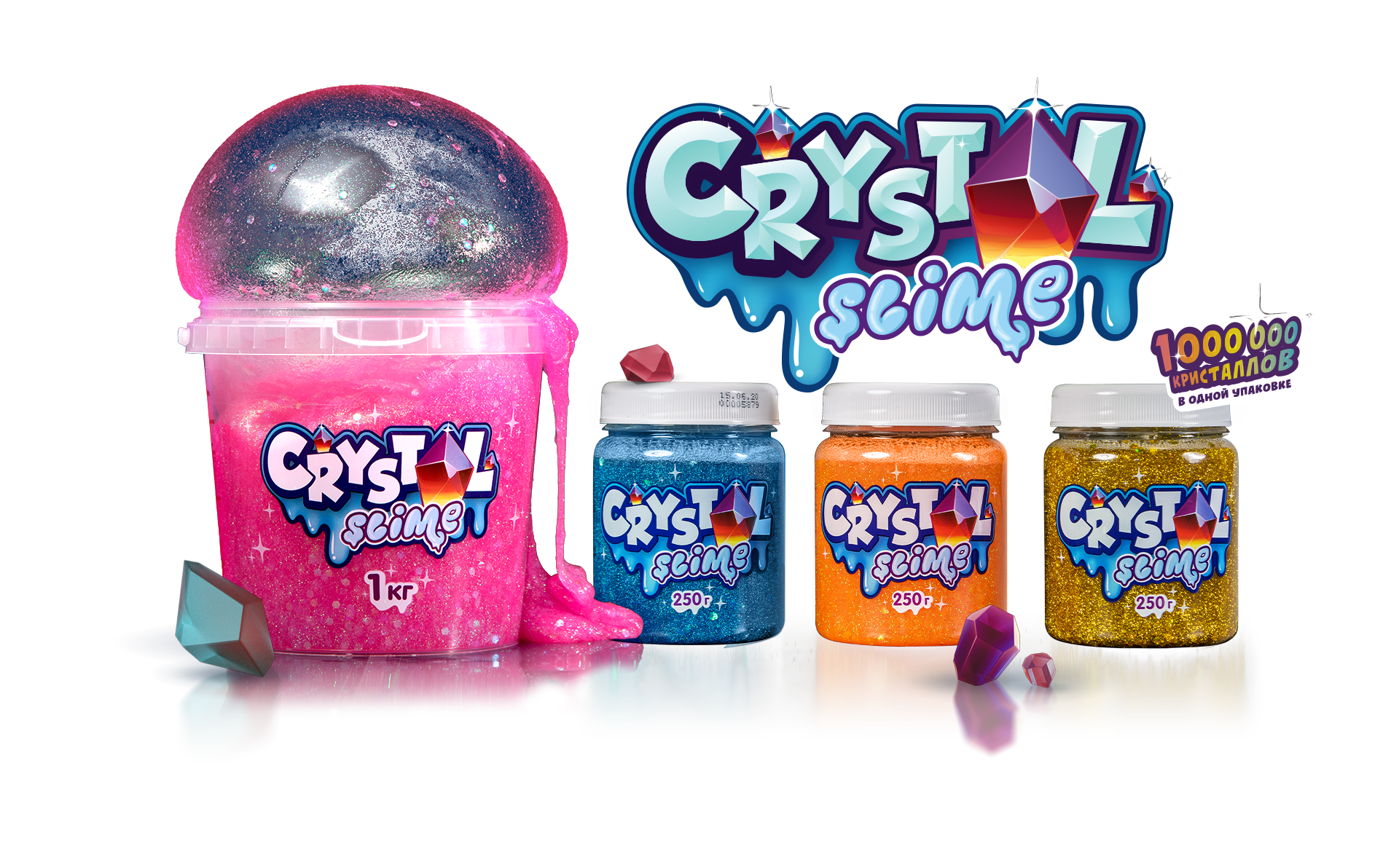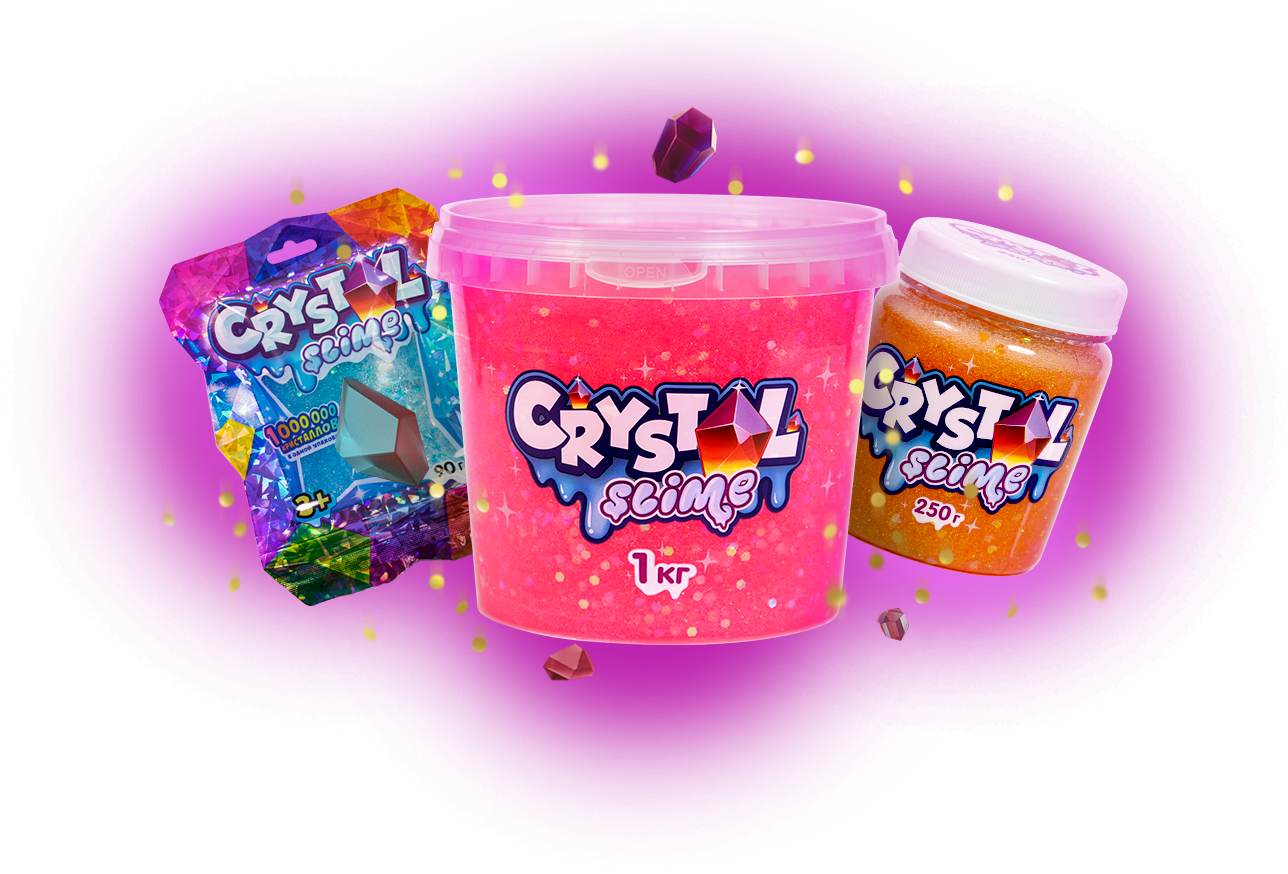 The unique range of CRISTAL SLIME is presented in the following formats: 90 g, 250 g, 1 kg.